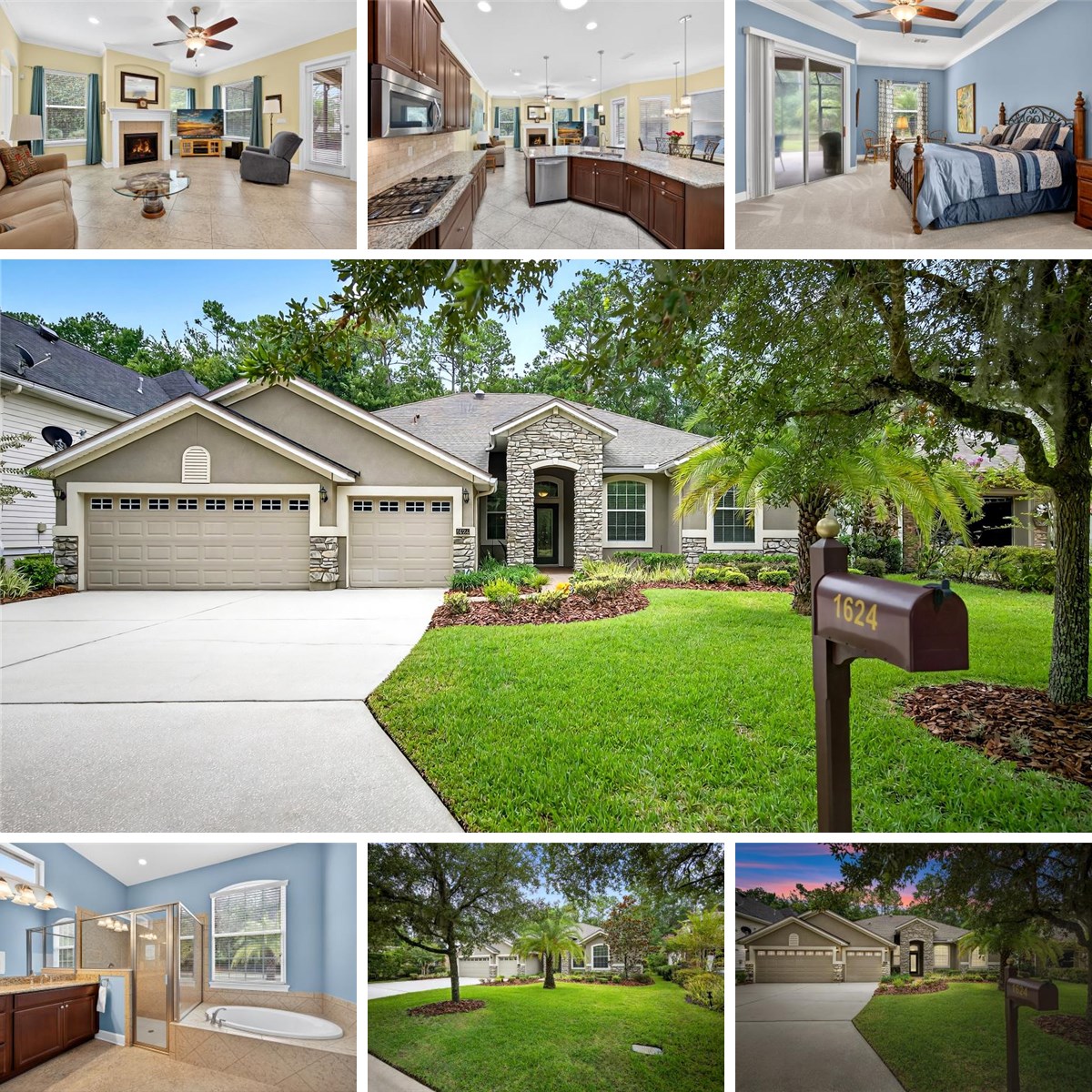 Don't miss this amazing opportunity to own your Dream Home in the gated King and Bear Golf community This stunning property custom built in 2013 is nestled on a private road/cul-de-sac with only 7 homes and surrounded by nature with no neighbors across the road or behind your new home. Inside, the spacious open floor plan offers versatility and style that you would expect from a custom built home. Upgraded features include a 3 car garage, 10 foot ceilings, solar tubes, tray ceilings, gas fireplace with custom mantle, tank-less water heater, crown molding, wainscotting, diagonal tile on floors and in showers, pull out kitchen cabinets, laundry tub, special level granite in kitchen and granite in all bathrooms., sprawling pavers,extended lanai, gutters plus so much more. Air conditioning unit replaced in 2023. Four generously sized bedrooms in a split layout, three modern bathrooms, a private office or den, a large family room and formal living and dining areas are exactly what would be expected in this elegant home.The oversized primary suite offers a bump out and two spectacular closets. Step outside on to a sprawling screened lanai and private yard with plenty of room for a pool The 1/4 acre lot is bordered by gorgeous natural preservation ensuring peace and tranquility. 1% of sales price toward buyers closing costs and $650 toward appraisal when working with preferred lender. Two world-class golf courses as well as a spa and restaurant, two pools, pickle ball and tennis courts, a state-of-the-art fitness center will add to your active lifestyle.